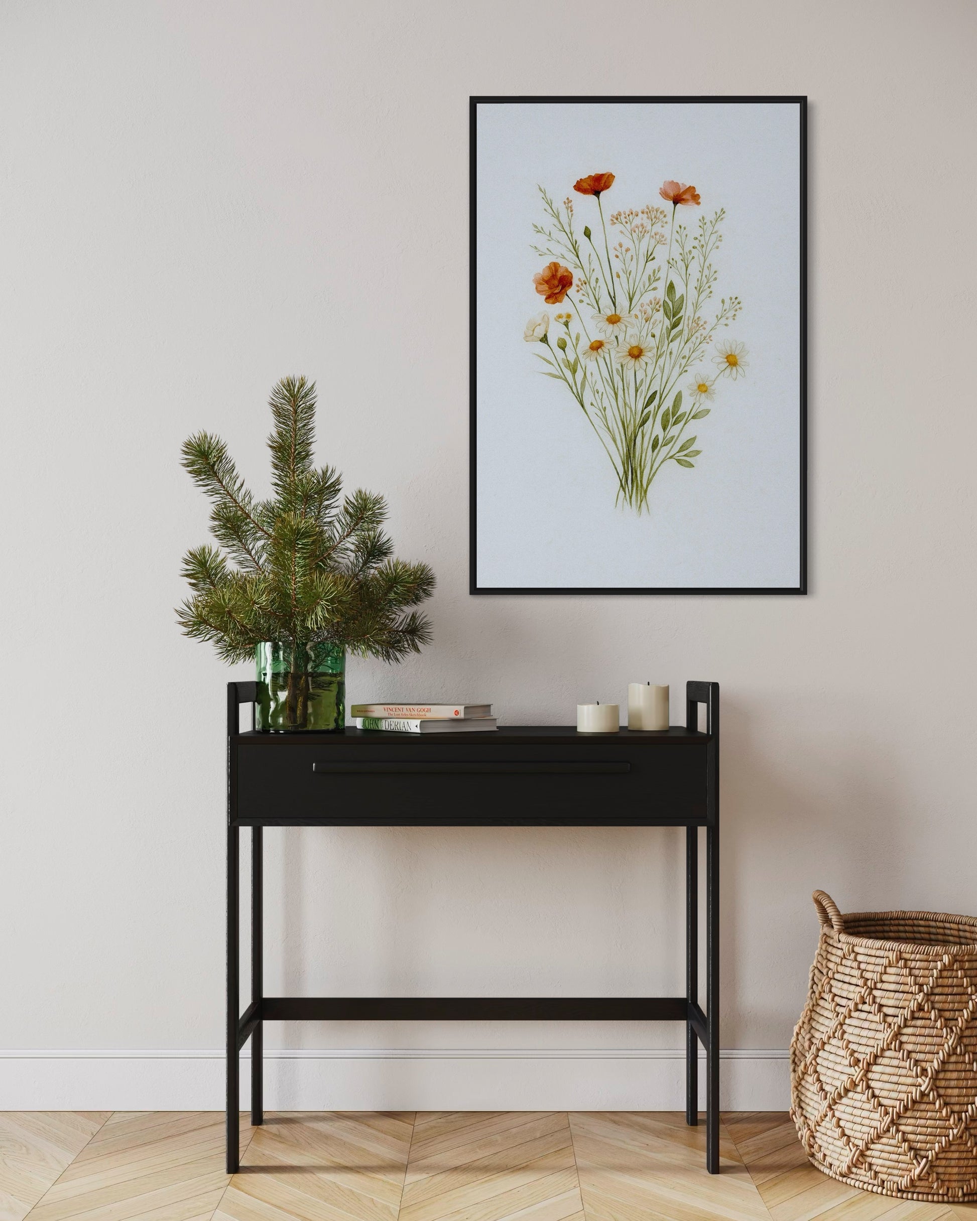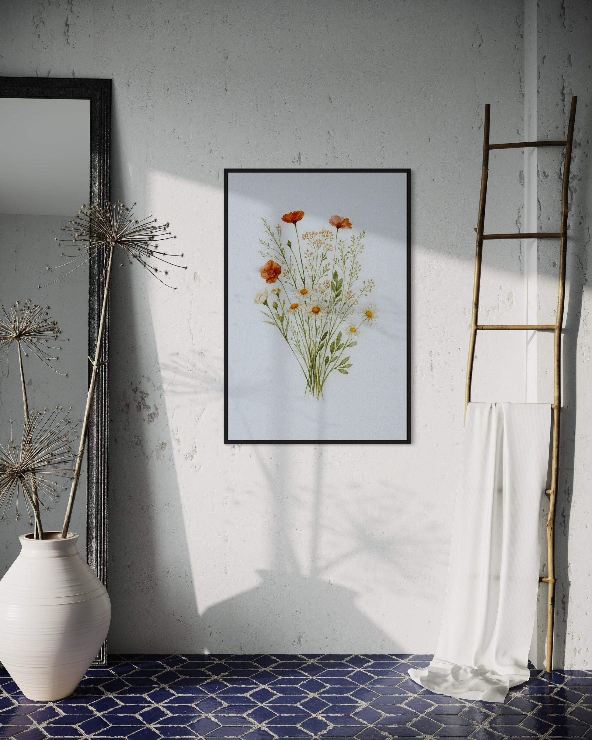 Bring timeless beauty into your space with this botanical watercolor wall art. Featuring a delicate bouquet of wildflowers—poppies, daisies, and soft greenery—this artwork radiates freshness, calmness, and natural elegance.
